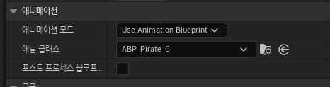 문제점 : Player 블루프린트 클래스(BP_Player)와 애니메이션 블루프린트 클래스(ABP_Anim) 연동 후 ABP_Anim에서 이런 저런 애니메이션을 적용시키려고 하였는데 작동이 되지 않았음