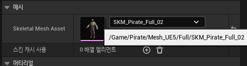 1. UE5 버전의 스켈레탈 메시를 선택해야 함.