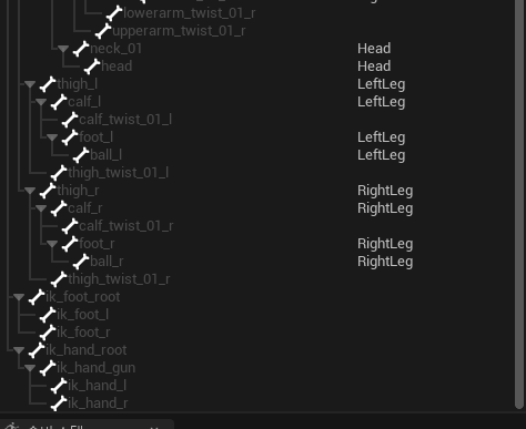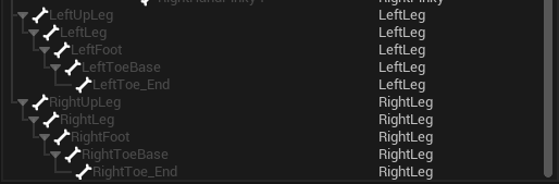 LeftLeg의 끝 본을 ball_l로 맞춰주자. 그러면 다리가 온전히 하나의 체인으로 구성된다.