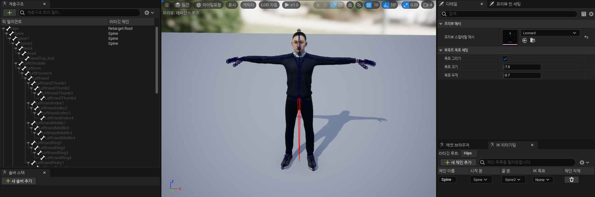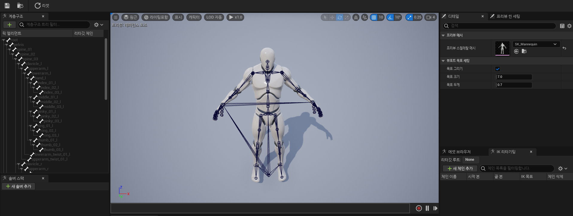 생성한 IK Rig을 열어주면 우리가 임포트한 캐릭터가 팔을 대자로 벌리고 있을 것이다.