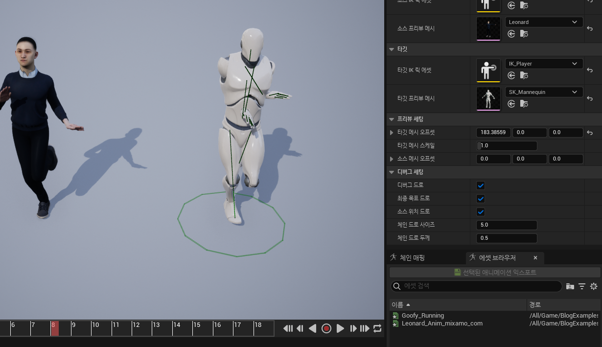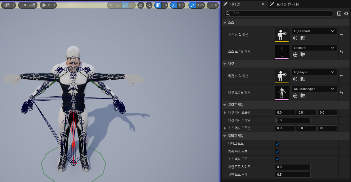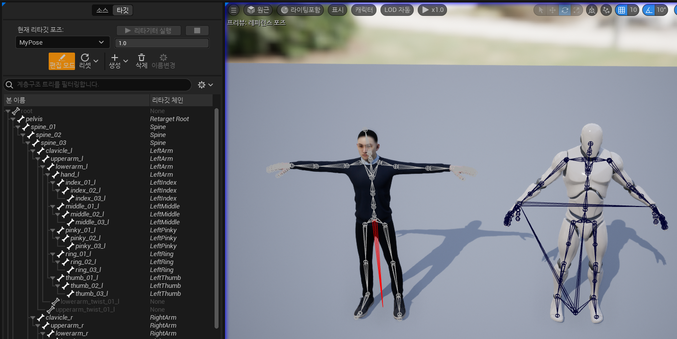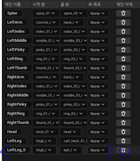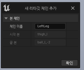 하나 더 생성된 LeftLeg_0 리타깃 체인은 삭제해주고