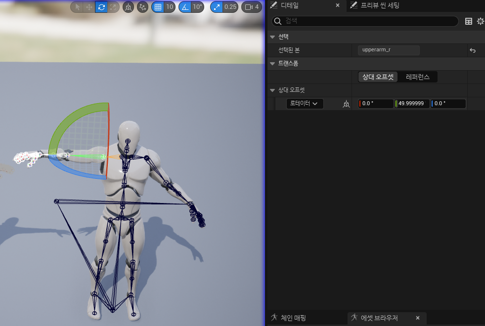 그럼 이렇게 캐릭터가 하나 더 나오는데, 우선 프리뷰 세팅 탭의 타겟 메시 오프셋으로 서로 겹치지 않게 만들어주자.