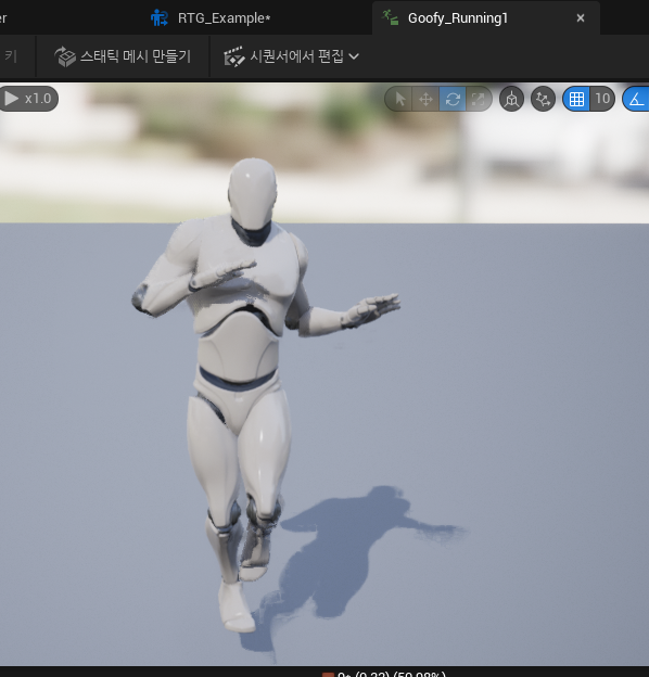 편집모드를 종료해주고, 우측 하단의 Goofy_Running 애니메이션을 다시 클릭해주면......