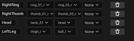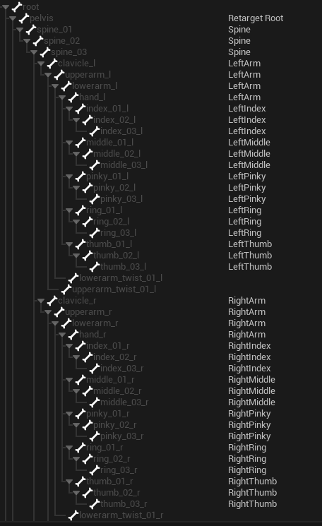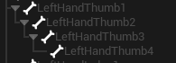 손가락은 각각 4개의 뼈를 왼손, 오른손 합쳐서 10번의 작업을 진행해야한다. (그래야 물건을 집는 애니메이션도 제대로 사용할 수 있음)