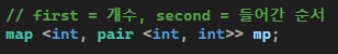 그림의 형태로 map을 만들기 위해 map<int, pair<int,int>> 형태로 선언해준다.
