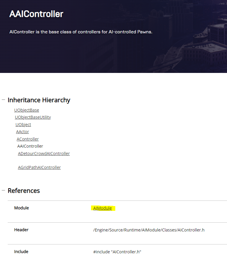 이번 경우엔 AIController를 사용하려고 헤더파일은 추가하였으나 모듈은 추가하지 않았을 경우.